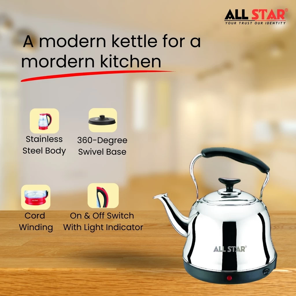 Ensures safety by automatically turning off when water reaches the boiling point or if the kettle is empty.✔ 360° Swivel Base