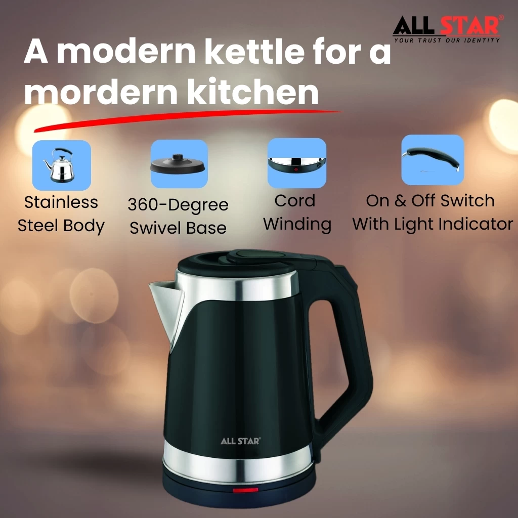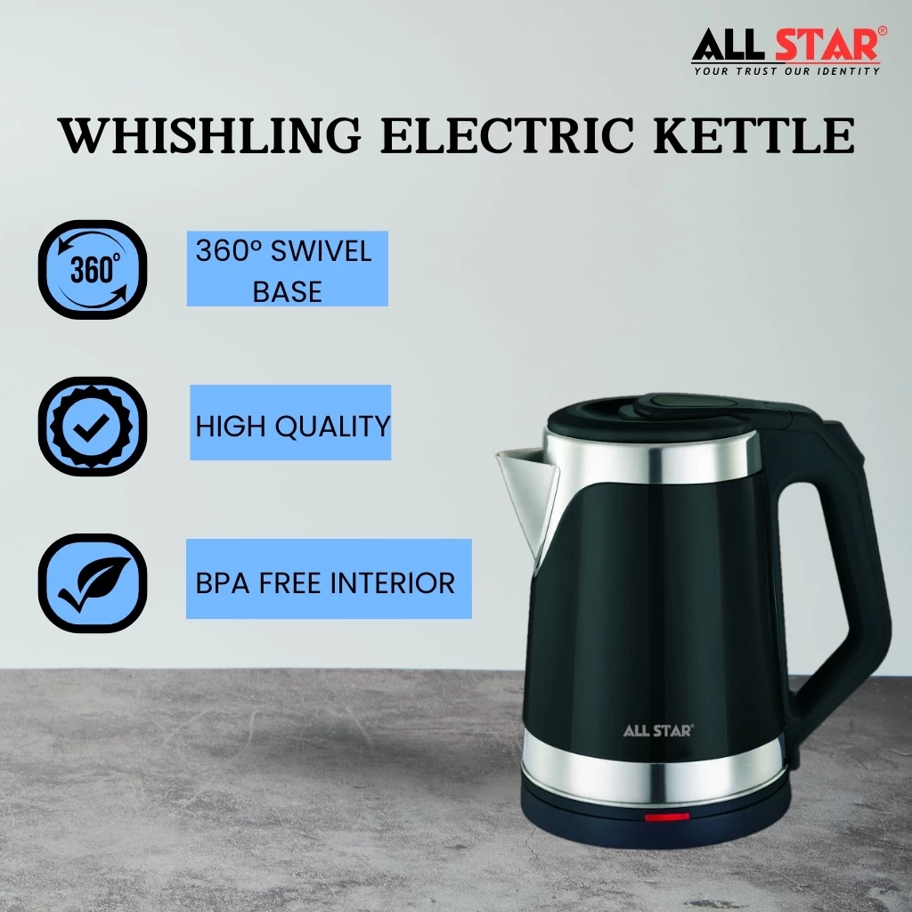 Ensures safety by automatically turning off when water reaches the boiling point or if the kettle is empty.✔ 360° Swivel Base